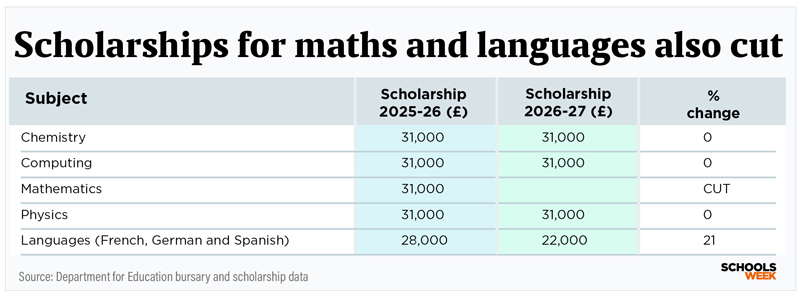 Meanwhile, a £31,000 scholarship for top graduates to train in maths has been ditched altogether.