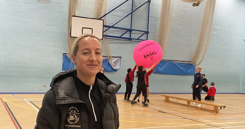 Downlands PE teacher Hayley Bridge says the game “works for those more disengaged in PE because it’s a bit different and easier in terms of skill level. It’s such a massive ball, you need teamwork to play.”