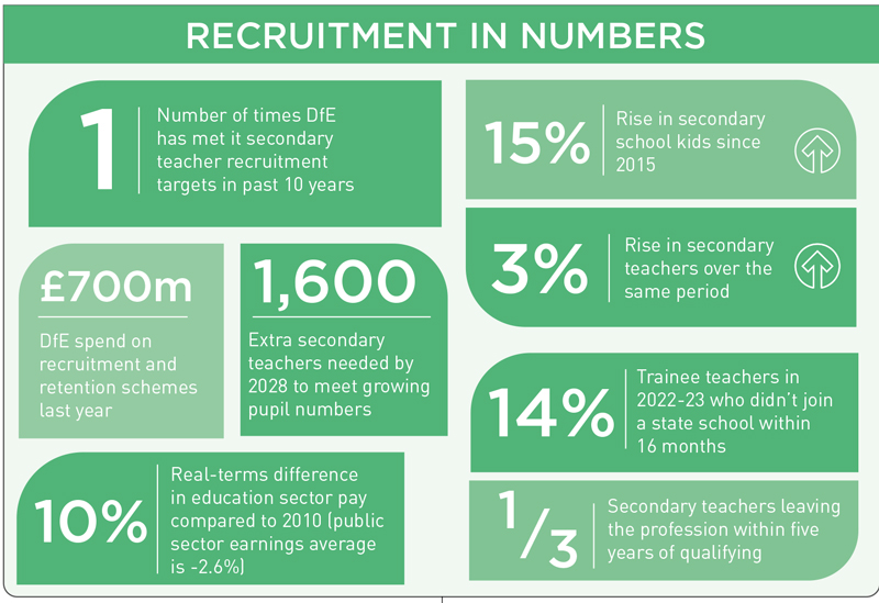 The government this week also revealed it was cutting its recruitment targets for next year by 19 per cent, which amounts to nearly 6,500 fewer secondary teachers.