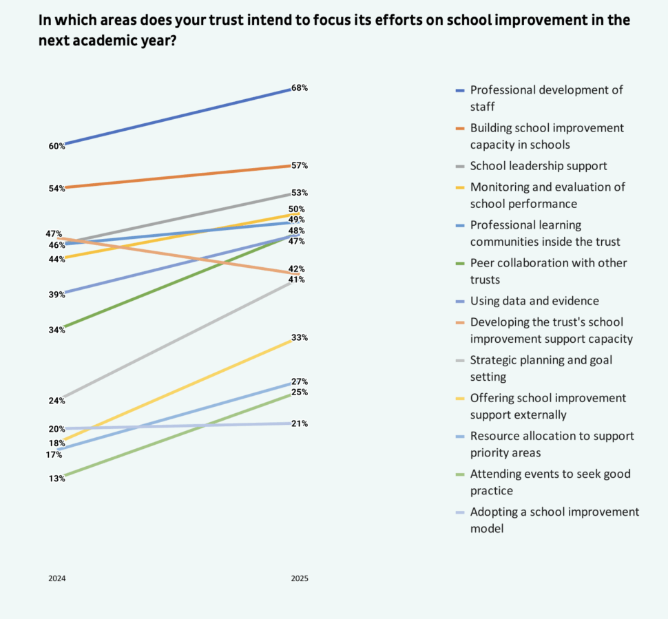 More trust leaders said they wanted to focus on staff development compared with last year, rising from 60 per cent to 68 per cent.