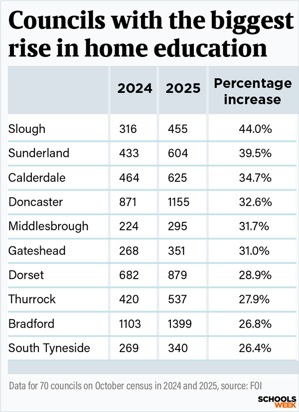 But some councils saw much larger rises. In Slough, the number in home education rose by 44 per cent. In Sunderland, the rise was 39 per cent.