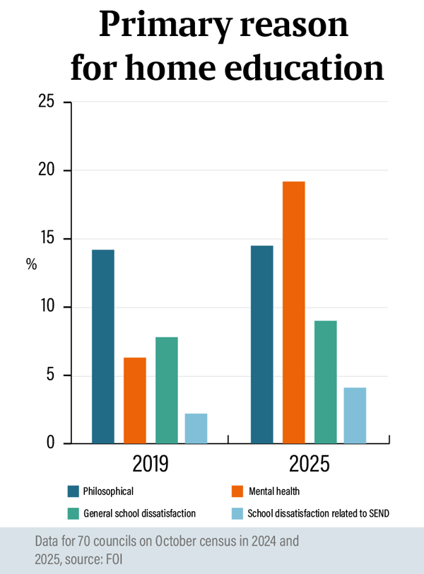 Mental health and concerns over SEND provision are increasingly being cited by families as the primary reason for home educating their children, an investigation has found.