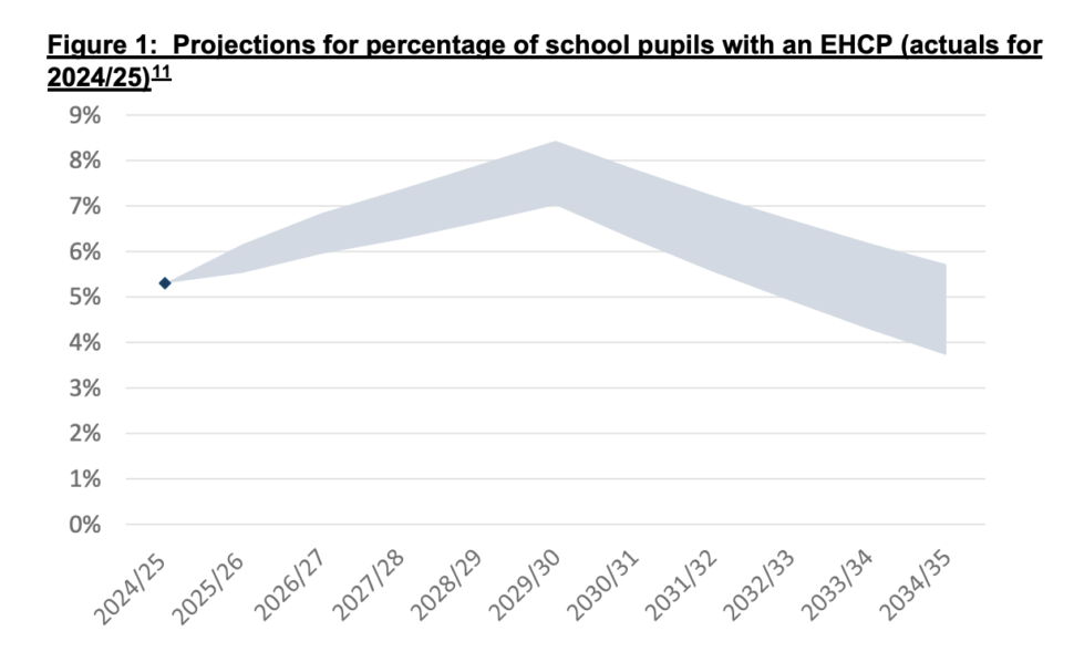 But DfE expects the number of children with EHCPs to continue rising over the next three years, returning to today’s level by 2035.