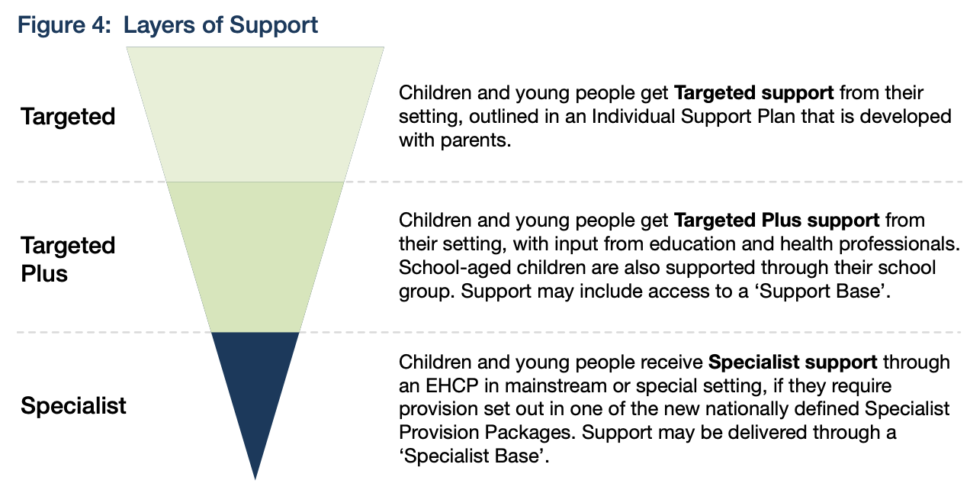 The new tiers will be guided by new standards to set “clear, evidence-based” guidance for the universal offer, as well as what targeted, targeted plus and specialist layers of support should look like.