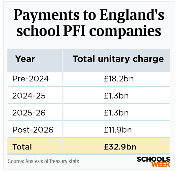Schools Week analysis of the accounts of 71 PFI companies, each operating an English school contract, shows they received over £620 million in mortgage-style payments in 2023-24.
