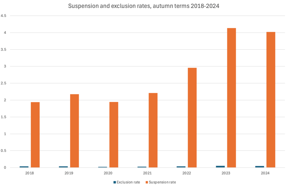 And exclusion rates have returned to pre-pandemic levels after a rise seen in autumn 2023.