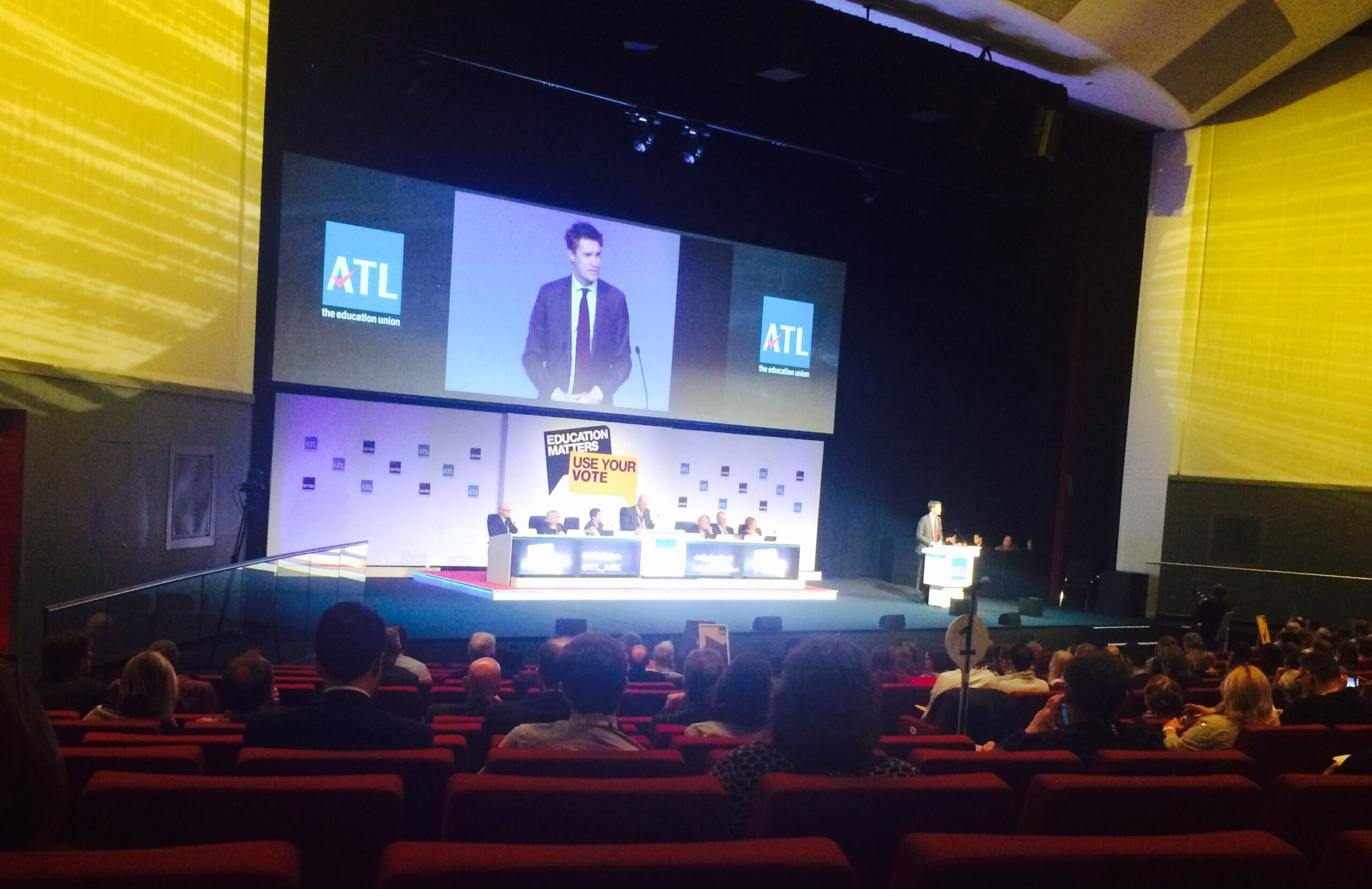 I spent six years as a teacher and never once went to a teacher union conference. In fact, the thought terrified me. My imagined version was of massive, bingo-style halls in which crotchety teachers leapt up complaining about the worst parts of the job. I’d spent four half-terms battling forgotten homeworks and playground fights – why would I give up my Easter holidays for that? As I pull up at Liverpool’s sea-fronted conference centre to attend ATL’s annual endeavour it is raining, hideously. The entrance hall is impersonal. Not good. The conference hall is dark, somber, bingo-like. The displayed motion is ‘death by a thousand cuts’. Super sigh. And yet… slowly… it starts to metamorphose. The chair, Mark Baker, is calm, sensitive, moves along with the right level of dignity. At one point he admits that an earlier flippant comment has upset people. He apologises and moves on. No flagellation or anger. Just, niceness. Then, Tristram arrives. And he’s good. Really good. As he walks to the podium, flailing his spiderlike limbs, I roll my eyes and brace for disappointment. It’s a union hall, he’s a Labour politician, one might not expect a rough crowd. But Labour edu-chiefs have left union halls in pieces before now. Members may be mostly red, but they’re not push-overs. Hunt nevertheless appears on startling form. Riding Ed’s “hell yeah” wave he has gumption and passion. A bit heavy on history, too light on policies, there’s a lot of “I want, I want” and not much “I’m going to” but he’s hitting all the right notes and the crowd are sucked in, baying for more… And then, there it is. The announcement that over the next Parliament, Labour would support a move towards a peer-review Ofsted system. The person next to me says “Wow!” – out loud – and begins clapping. He’s not alone. Warmed up, the audience become responsive – as if a at a rock concert. Laughter at the idea of budget protections, clapping at the end of free schools, Gove’s name dodges a hiss but gains visible headshaking. Afterwards, I amble into a hallway conversation among three young people. A primary teacher, a secondary department lead, and an education consultant. The primary teacher is happy Hunt mentioned poverty, the secondary teacher excited about trust in the profession, the consultant pleased about comments on a ‘digital revolution’. All surprised he did well. In the coffee line I find myself next to Mark Baker, the president. During a motion about zero hour contracts I’d got lost in shenanigans about an amendment, and when Baker had announced the vote was a tie (187 to 187) I wasn’t sure what that meant. He explained, in characteristic humble Rochdale tones, that he’d had the casting vote and he’d decided the amendment had passed, meaning a line from the original motion had been scrapped. It sounded sensible, and not too hard to fathom. At the end of the line I received a nice cup of coffee and a flapjack. This wasn’t too bad, at all. The day wore on – motions in the hall, teachers taking the stand, stories shared, votes passed. In the corridor, teachers discussed all manner of issues. There were chats about Scottish teaching, and Ofsted. Tests for four year olds, and Ofsted. The reluctance of government to talk about special needs, and more Ofsted. For those who read social networks, it was like Twitter – but live. Fears that motions would be despondent bore out, but when hearing the stories, it became obvious why. The hall was silent as Rod Bissett, from Birmingham, described his own depression and how it affected his career. He explained how a colleague with a physical disability had adaptations made for her but a colleague suffering panic attacks was told to pull herself together. “That is not taking her illness seriously,” he said. Alison Sherratt, a member of ATL’s executive committee, described the exhaustion she felt as a carer to elderly parents, while also looking after her three daughters – each at precarious points in their education – and trying to keep up with a senior school position. “And then the menopause,” she sighed, “with all its health implications”. Story after story of people struggling. Outside, the rain kept falling. As I walked away at the end of the day I wondered whether giving up part of your holiday to share in such misery is worth it. But it’s important to remember that the discussions are followed by votes. And those votes are for motions that urge change. Maybe the resolution asks union leaders to raise a debate, or push for change, or make a promise. Painful though the debate is, it’s not without purpose. It shines light on the realities of teaching and in doing so persuades people to support real change. Union membership isn’t to everyone’s taste, in the same way that working in a free school, or being of the Territorial Army isn’t. Attending conference, equally so. I also hear that ATL is somewhat different to other unions in that their motions are speedier, with fewer factions and aggressiveness. This may or may not be true. It would be useful to hear in the comments. In the end, what it was, is a lot less scary or pointless than I expected or hadbeen led to believe. Even in the rain, optimism shone through. I wonder if it still will next year.